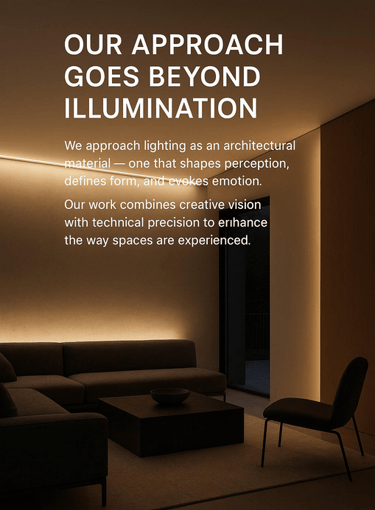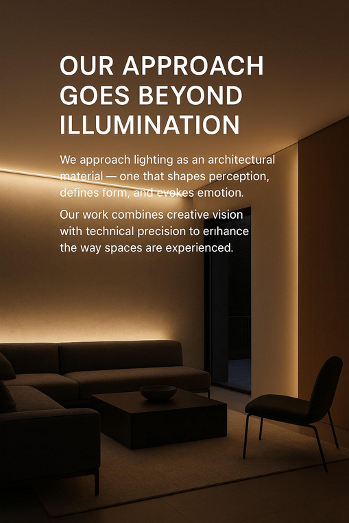 Our approach is rooted in both creativity and technical precision. We treat light as a fundamental architectural material, shaping how spaces are seen and felt.